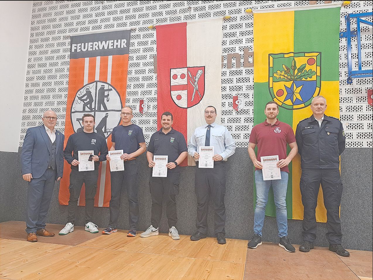 Von der Höringer Feuerwehr wurden Fabienne Bohlander, Timo Enders, Dustin Braun und Tim Seifert zur Feuerwehrfrau bzw. -männern befördert. Jürgen Merz und Cedric Becker wurden zu Brandmeistern befördert.