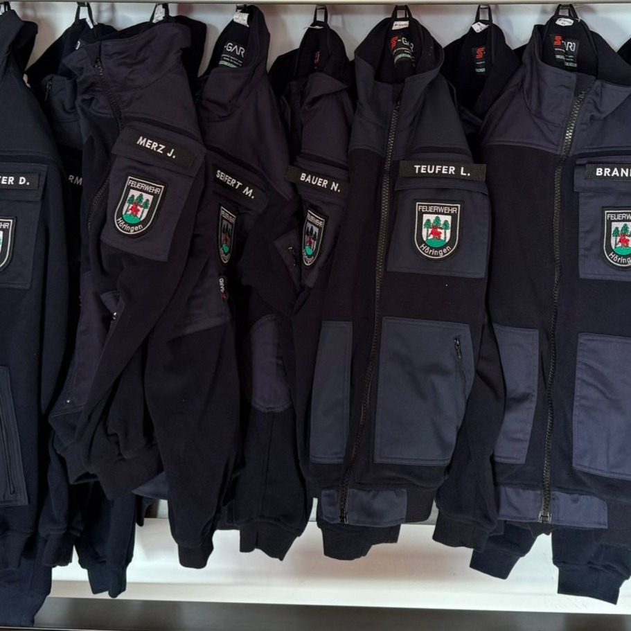 Die Mitglieder hatten sich einheitliche Poloshirts für ihre Teilnahmen an Veranstaltungen und Fortbildungen gewünscht, die individuell mit dem Namen des Feuerwehrmitglieds, dem Logo unseres Ortes und dem Schriftzug "FEUERWEHR HÖRINGEN" auf dem Rücken bestickt sind.