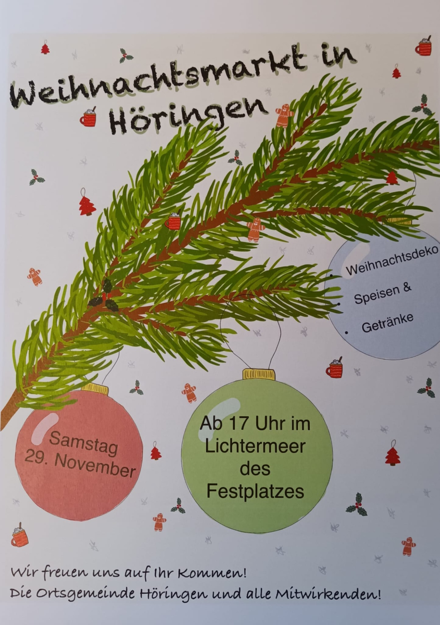 Am Samstag, 29. November 2025, hat die Freiwillige Feuerwehr Höringen den Weihnachtsmarkt der Ortsgemeinde Höringen unterstützt. Zahlreiche Mitglieder der Feuerwehr haben beim Auf- und Abbau der Tische, Bänke und Stände geholfen.